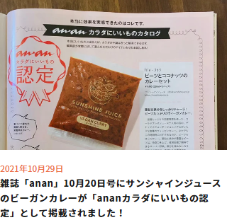 →ビーツとココナッツのビーガンカレーは雑誌にて「カラダにいいもの認定」に選出